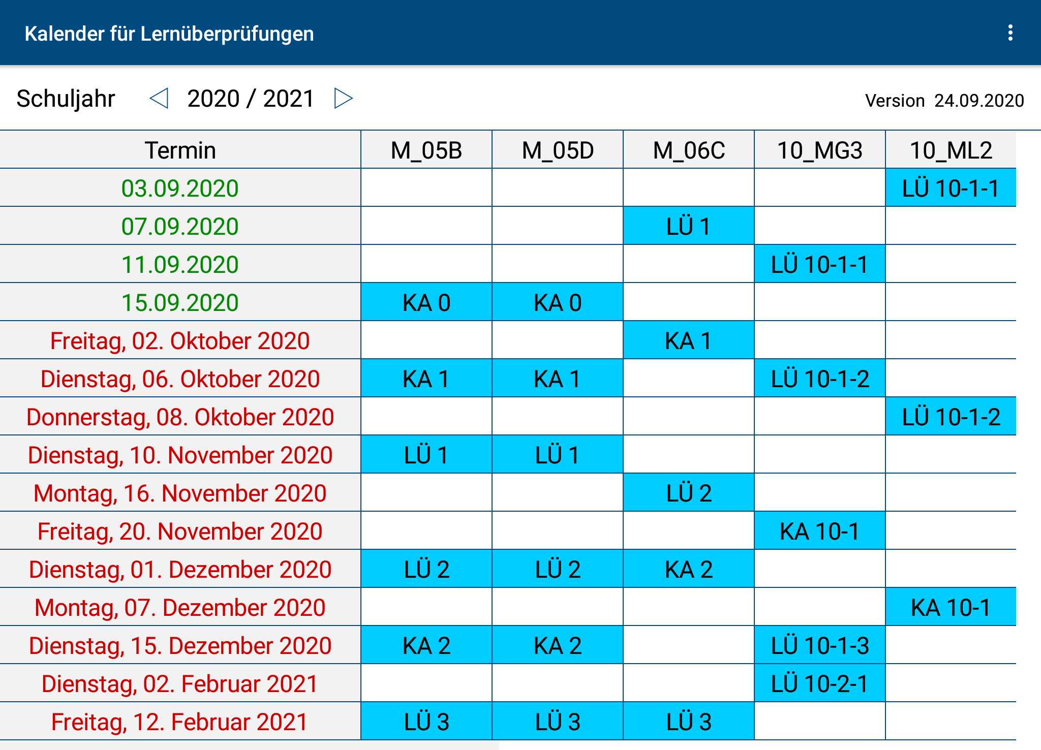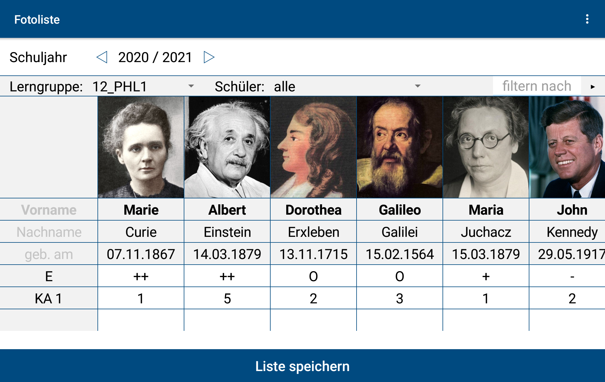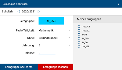 Here you can see the learning groups 10_MG3, 10_ML2, etc. as already been set up.