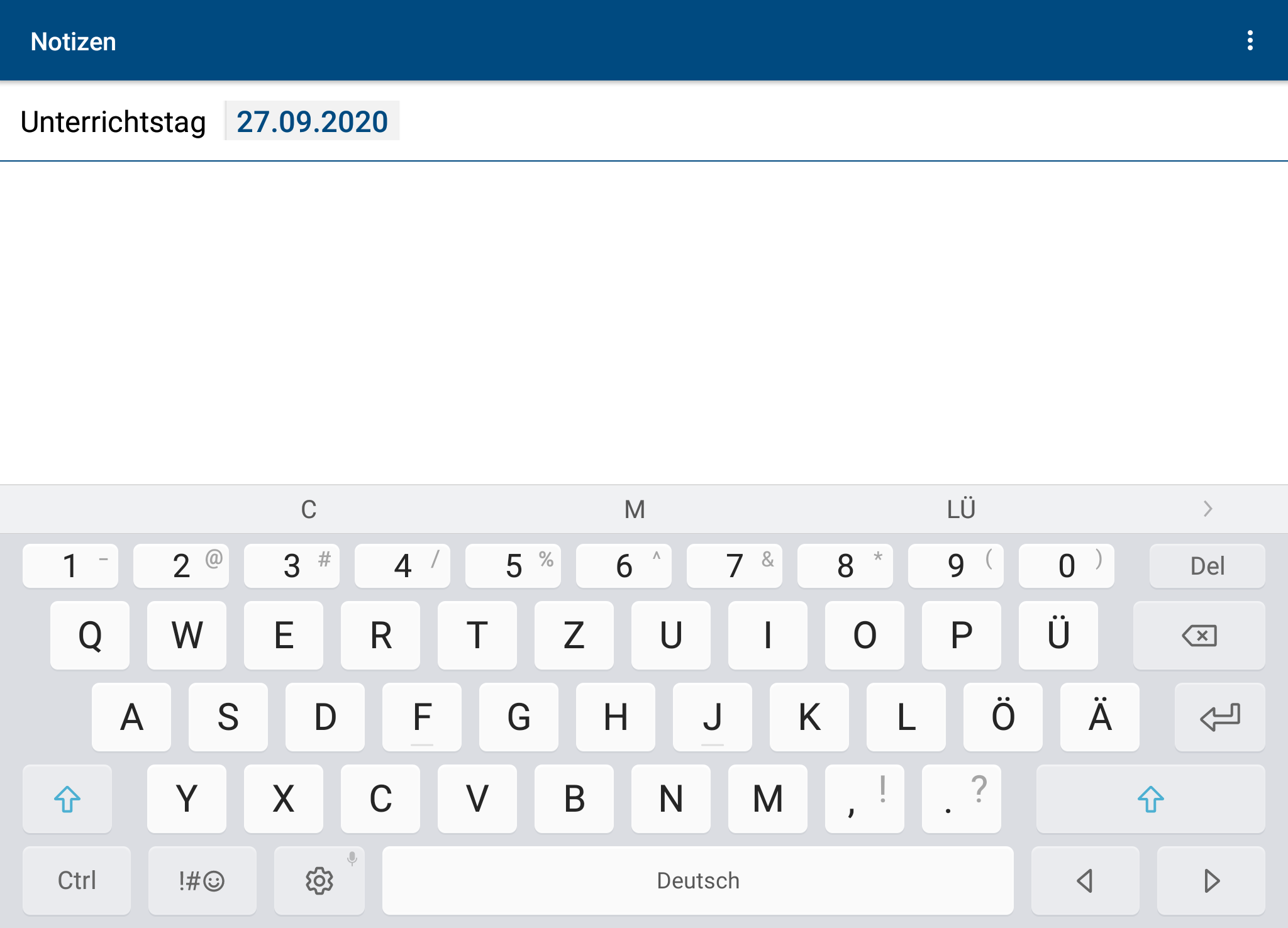 Then use the arrow keys ◁ bzw. ▷ to navigate to the correct school year and enter the date from which the new timetable will apply.